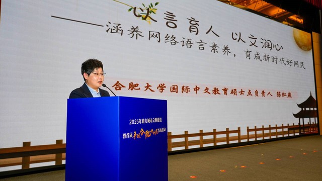 合肥大學(xué)文化與旅游學(xué)院學(xué)生所做的作品在此次評選中斬獲1個二等獎、2個三等獎,合肥大學(xué)國際中文教育碩士點負(fù)責(zé)人、文旅學(xué)院副教授陳紅燕在活動中帶來主題分享,從專業(yè)視角為網(wǎng)絡(luò)文明建設(shè)建言獻(xiàn)策,23新聞學(xué)班的獲獎學(xué)生們也出席了頒獎現(xiàn)場。