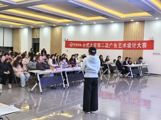 12月26日下午6:30,合肥大學第二屆廣告藝術設計大賽決賽在二期新大學生活動中心北樓206室成功舉辦。本次賽事由文化與旅游學院主辦,中國聯通校園卡提供贊助支持。決賽現場特邀校團委辦公室主任李雯雯老師、中國聯通合肥大學校區孫偉先生以及文化與旅游學院團委負責老師竇思佳擔任評委,本次比賽由巫紹陽、項奕同學主持。