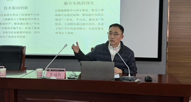 文化與旅游學院張體云副院長在開場主持中表示,李福凱主任長期深耕新聞視覺與融合報道一線,其專業實踐與行業思考對新聞傳播學科建設與人才培養具有重要的參考價值,希望通過本次講座幫助學生貫通歷史脈絡,理解傳媒發展的內在邏輯。