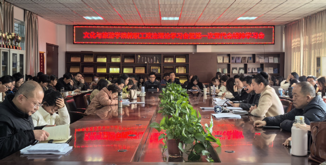 2026年1月16日上午,文化與旅游學院召開期末全體教職工大會,專題開展政治理論學習,深入學習貫徹學校第一次黨代會精神。會議由學院黨委書記丁增武主持,全體教職工參加。