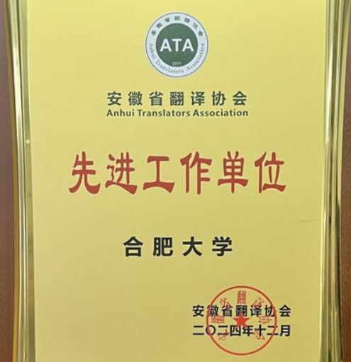 12月7日,安徽省翻譯協會2024年年會暨AI翻譯技術論壇在合肥舉行,我校作為安徽省翻譯協會常務理事單位,憑借過去一年在翻譯領域所作出的突出貢獻,榮獲“先進工作單位”稱號。