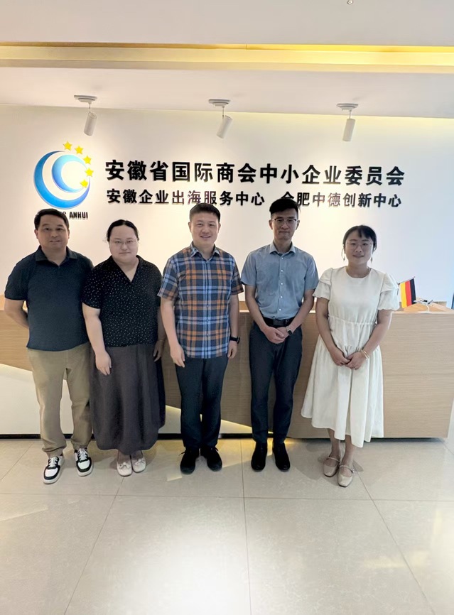 8月14日上午,合肥大學(xué)外國(guó)語學(xué)院副院長(zhǎng)曹昊(主持工作)、德語系主任張煒、副主任朱越和畢業(yè)班輔導(dǎo)員李發(fā)俊訪問合肥中德創(chuàng)新中心,與中心總經(jīng)理吳凡及相關(guān)負(fù)責(zé)人進(jìn)行座談。