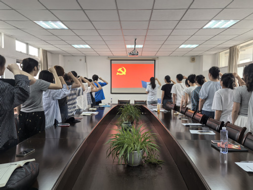 最后,在鮮紅的黨旗前,全體黨員高舉右拳,以飽滿的熱情重溫入黨誓詞,鏗鏘有力的宣誓聲在會場回蕩,彰顯了共產黨人的初心如磐,詮釋了牢記使命的堅定信念。