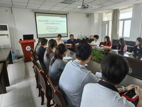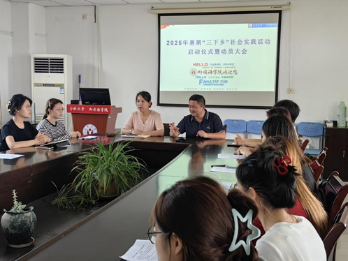 為積極響應國家鄉村振興戰略,引導青年學子在社會實踐中厚植家國情懷、錘煉過硬本領,6月19日中午外國語學院于一期八棟三樓會議室組織召開2025年暑期“三下鄉”社會實踐活動啟動儀式暨動員大會。外國語學院黨委書記吳孔寶、指導教師張正華及“三下鄉”團隊全體成員參加了會議。