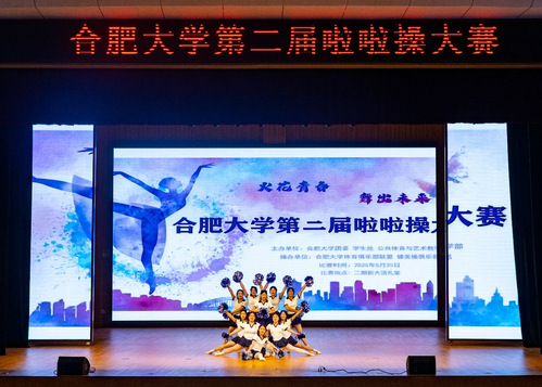 5 月 25 日晚 18:30,合肥大學第二屆啦啦操大賽在新大學生活動中心二樓禮堂盛大開場。本次大賽吸引了眾多學院的隊伍踴躍參與,現場座無虛席,洋溢著青春的活力與激情。