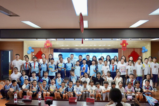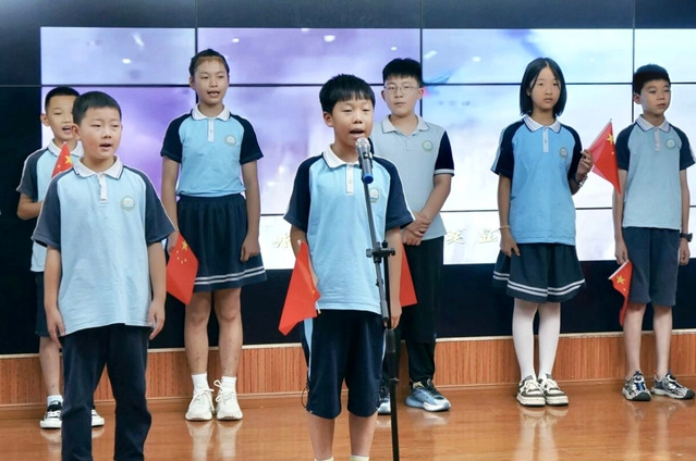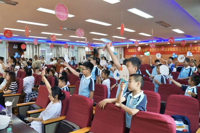 7月11日上午,合肥大學外國語學院“語”你同行鄉村振興團在肥西縣高店鎮中心學校舉辦了一場別開生面的成果匯報演出。這場匯演不僅是學生們暑期少年宮一周學習成果的精彩展現,同時也為此次“三下鄉”社會實踐活動畫上圓滿句號。肥西縣高店鎮鎮中心學校馮慶松副校長、楊光新主任、王業順主席、陳俊主任、“三下鄉”指導教師張正華及學生家長觀看了匯報演出。