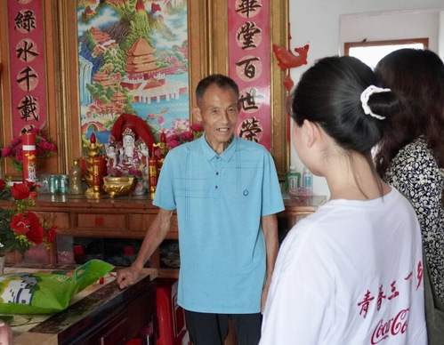 大雨之下,團(tuán)隊(duì)成員最后一同驅(qū)車(chē)前往鄰村拜訪最后一名老黨員徐應(yīng)宏。他同時(shí)是一名光榮的退伍軍人、為村子建設(shè)發(fā)展貢獻(xiàn)了三十年黃金歲月的村書(shū)記。團(tuán)隊(duì)成員同徐老先生進(jìn)行了熱切交流,即使老先生身體抱恙,在談及黨和人民時(shí)雙眼仍炯炯有神。他向隨行學(xué)生們表達(dá)了對(duì)黨的崇高敬意,并囑咐成員們要心懷理想,一心向黨,不負(fù)使命。預(yù)備黨員姚海峰在此行中表示,聆聽(tīng)了多位老黨員的光榮事跡和心路歷程,這更加堅(jiān)定了他不忘初心、牢記使命,為實(shí)現(xiàn)中華民族偉大復(fù)興的中國(guó)夢(mèng)而不懈奮斗的至高理想。