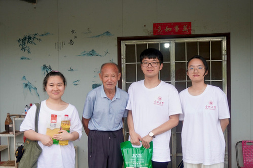 為表達(dá)對(duì)老黨員們的深情敬意和感恩之情,增強(qiáng)大學(xué)生的榮譽(yù)感、歸屬感、使命感,賡續(xù)紅色基因,傳承優(yōu)良傳統(tǒng),7月10日上午,外國(guó)語(yǔ)學(xué)院“語(yǔ)”你同行鄉(xiāng)村振興團(tuán)在指導(dǎo)老師張正華的帶領(lǐng)下走訪慰問(wèn)了三位老黨員代表,憶崢嶸歲月,感紅色情懷。