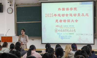 為保障我校第二屆田徑運(yùn)動(dòng)會(huì)高效順利開展,10月15日中午外國(guó)語(yǔ)學(xué)院運(yùn)動(dòng)會(huì)志愿者及運(yùn)動(dòng)員培訓(xùn)大會(huì)在5棟101舉行,團(tuán)委副書記張正華主講,全體運(yùn)動(dòng)員及志愿者參會(huì)。
