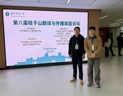 11月21-23日,第八屆桂子山翻譯與傳播高層論壇在武漢順利召開。本次論壇由華中師范大學外國語學院主辦,吸引了來自全國翻譯與傳播領域的眾多專家學者齊聚桂子山,圍繞翻譯研究、話語傳播、人工智能與翻譯教育等議題展開深入交流。我院盧楊老師帶領2025級國際中文教育碩士生葉子璇參加了本屆論壇,并在分論壇作了匯報。