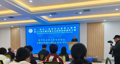 “長三角賽場競風采,順天鄉(xiāng)杯賽傳佳音”。第二屆長三角韓國語演講大賽暨第十八屆順天鄉(xiāng)杯韓國語演講比賽于12月3日在合肥大學成功舉行。合肥大學選派嚴多潤、楊文兩名同學代表學校參賽,與來自長三角地區(qū)多所高校的選手同臺競技。