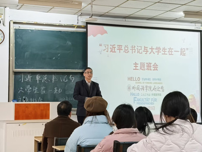 12月5日中午,外國語學院于一期五棟101教室召開“習近平總書記與大學生在一起”主題班會。外國語學院黨委書記羅會必、組織員李菲菲、輔導員李發俊、張正華、王雨濛、全體在校學生干部參會。