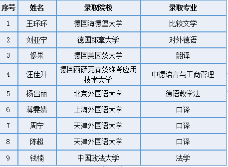 自2015年以來(lái),47名畢業(yè)生被國(guó)內(nèi)外高校錄取為碩士研究生,其中30名就讀于北京外國(guó)語(yǔ)大學(xué)、上海外國(guó)語(yǔ)大學(xué)等國(guó)內(nèi)一流高校德語(yǔ)專業(yè),17名畢業(yè)生赴德國(guó)海德堡大學(xué)、耶拿大學(xué)、紐倫堡大學(xué)等著名高校留學(xué)深造;專業(yè)相關(guān)度達(dá)91.5%,年均升學(xué)率22.4%,高出省內(nèi)總體升學(xué)率1倍。