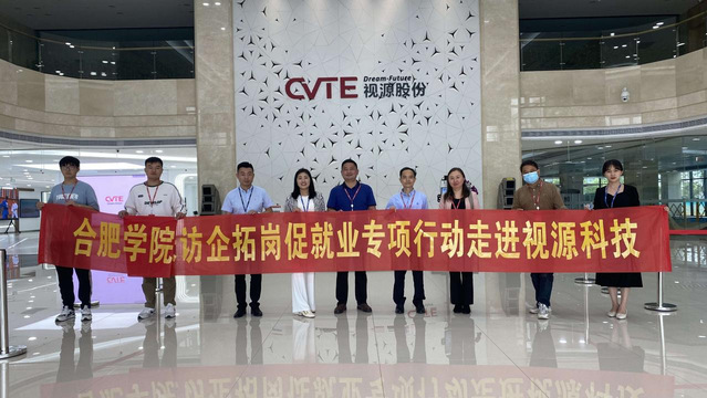余書記一行先后參觀了視源股份合肥產(chǎn)業(yè)園的展廳、辦公場所和休閑場所,并參加了由視源領(lǐng)行組織的座談會。視源領(lǐng)行人才訓(xùn)練與培養(yǎng)負責(zé)人于彩林對企業(yè)基本情況、專業(yè)領(lǐng)域、客戶需求、發(fā)展前景、組織氛圍、辦公環(huán)境、用餐環(huán)境、員工健康管理等方面進行介紹。校招負責(zé)人邵曼曼對校招計劃安排、人才培養(yǎng)方案等介紹,指出公司人才培養(yǎng)有管理和專家兩條發(fā)展通道,并會對新入職員工進行一對一導(dǎo)師負責(zé),建立人才研究院,員工個性化發(fā)展等,提出目前公司仍有部分崗位人才缺口,希望我院畢業(yè)生多投遞簡歷。