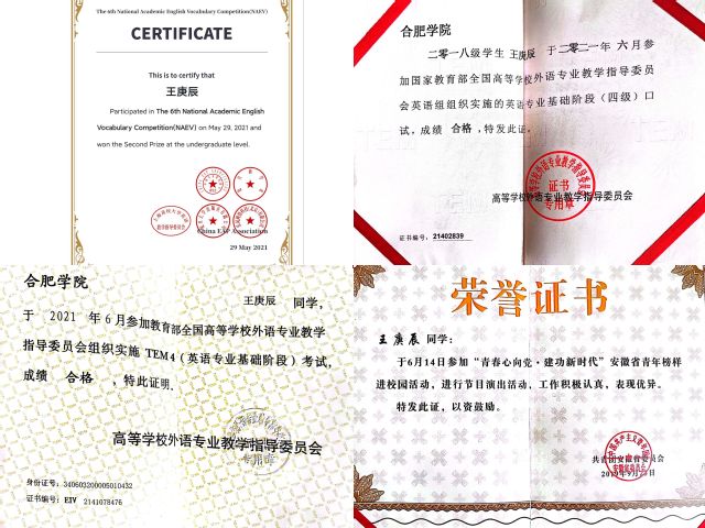萬(wàn)事須已遠(yuǎn),他得百我閑。青春須早為,豈能常少年。世間萬(wàn)事都必須從長(zhǎng)遠(yuǎn)打算,年少時(shí)需要及時(shí)作為,因?yàn)槿藷o(wú)法一直保持著青春年少。作為青年人,應(yīng)珍惜韶華,潛心讀書,敏于求知。年輕是優(yōu)勢(shì)、是資本,學(xué)習(xí)的路途才剛剛起步,工作的生涯還很長(zhǎng),夢(mèng)想有多遠(yuǎn),舞臺(tái)就有多大。但夢(mèng)想從學(xué)習(xí)開始,事業(yè)靠本領(lǐng)成就。王庚辰剛開始對(duì)就業(yè)的認(rèn)知并不明確,在對(duì)自己未來(lái)的職業(yè)做出清晰的規(guī)劃后,他堅(jiān)定了考研的想法。王庚辰認(rèn)為通過(guò)考研,不僅能夠提升自己的專業(yè)水平,還能更好地了解專業(yè)相關(guān)工作的發(fā)展趨勢(shì),通過(guò)提高自身本領(lǐng),從而在未來(lái)的工作生涯中提升自身競(jìng)爭(zhēng)力。對(duì)于考研中的生活,王庚辰坦言,自己雖無(wú)法做到一整天泡在圖書館,但他會(huì)保證學(xué)習(xí)效率,在學(xué)習(xí)的時(shí)間里只做學(xué)習(xí)的事。例如他在下午兩點(diǎn)到晚上十點(diǎn)半在圖書館的時(shí)間內(nèi),他會(huì)確保學(xué)習(xí)一小時(shí)休息十分鐘的節(jié)奏完成既定目標(biāo)。品行端正是做人的根本,勤勞用功是上進(jìn)的階梯。正因?yàn)榍趧趭^斗,王庚辰在大學(xué)里也獲得了許多證書,一分耕耘一分收獲,想要多大的收獲就要多大的付出,越努力才會(huì)越幸運(yùn)。