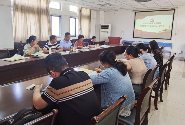 9月6日下午2點30分,外國語學院于8號樓3樓會議室召開黨委(擴大)會議暨黨委理論中心組學習會。會議由外國語學院黨委副書記吳孔寶主持,學院黨委委員、紀委委員、各支部書記參加。