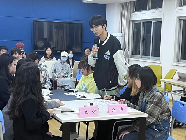 正方的攻辯小節、自由辯論也非常出彩,辯手們激烈對弈,其中正方三辯表現突出,面對反方的問題可以冷靜地給出有理有據的反駁。正方四辯在論辯總結時呈現出來的清晰的表達能力與邏輯思維能力,也為比賽增添了亮點。
