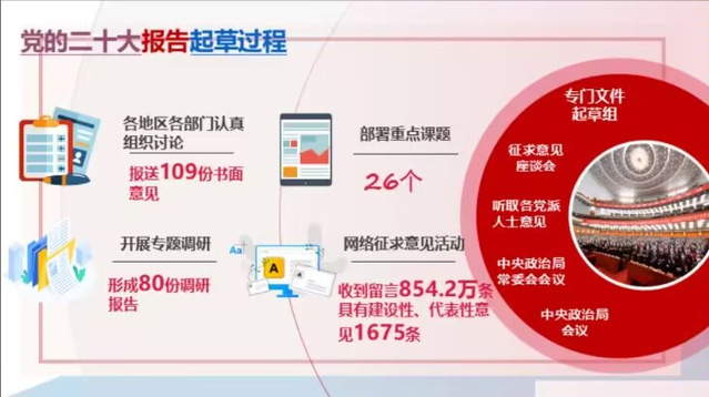 為了讓學員們對黨的二十大有更加全面的理解,金老師首先介紹了黨代會的地位和功能。結合二十大相關主題視頻,金麗老師講解了黨的二十大報告的起草過程,并詳細敘述了二十大報告中提高人民生活品質、增進民生福祉的重大意義、目標與基本原則以及具體思路和對策措施。在積極參與金老師組織的線上互動過程中,各位培訓班學員深入了解和體會了黨的十八大以來我們國家取得的歷史成就。