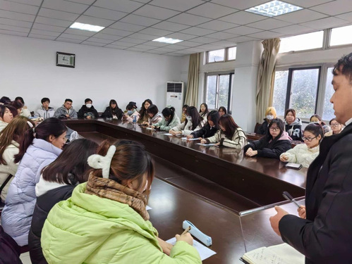 為進一步強化學風建設嚴肅考風考紀同時提高安全防范意識20231215日中午外國語學院于三樓會議室召開考風考紀防電詐冬春季傳染疾病防控專題會議院20個班級的團支書組織委員宣傳委員等班委參加會議李發俊老師主持會議