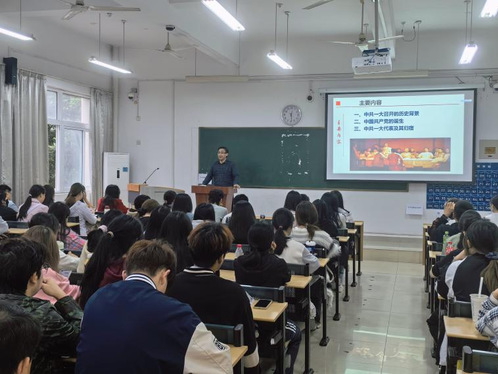 為深入學習貫徹黨的二十大精神,加強入黨積極分子黨史學習教育,外國語學院于4月29日在5棟105舉行了入黨積極分子培訓班第三次專題黨課。黨課由合肥大學紀委副書記羅會必主講,主題為“中共一大及其代表的最終歸宿”。