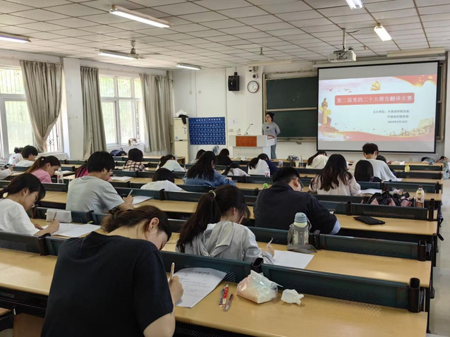本次比賽以黨的二十大報告為載體,聚焦黨的二十大報告中的熱詞、金句、重點、要點和亮點,采取筆譯的方式,面向全校學生,設立英、德、日、朝鮮語四個賽道。在比賽中,選手們努力讓譯文既忠實于原文,又符合外語表達習慣,不僅展示了扎實的外語專業能力,也體現了對黨的二十大精神的深刻理解和感悟。