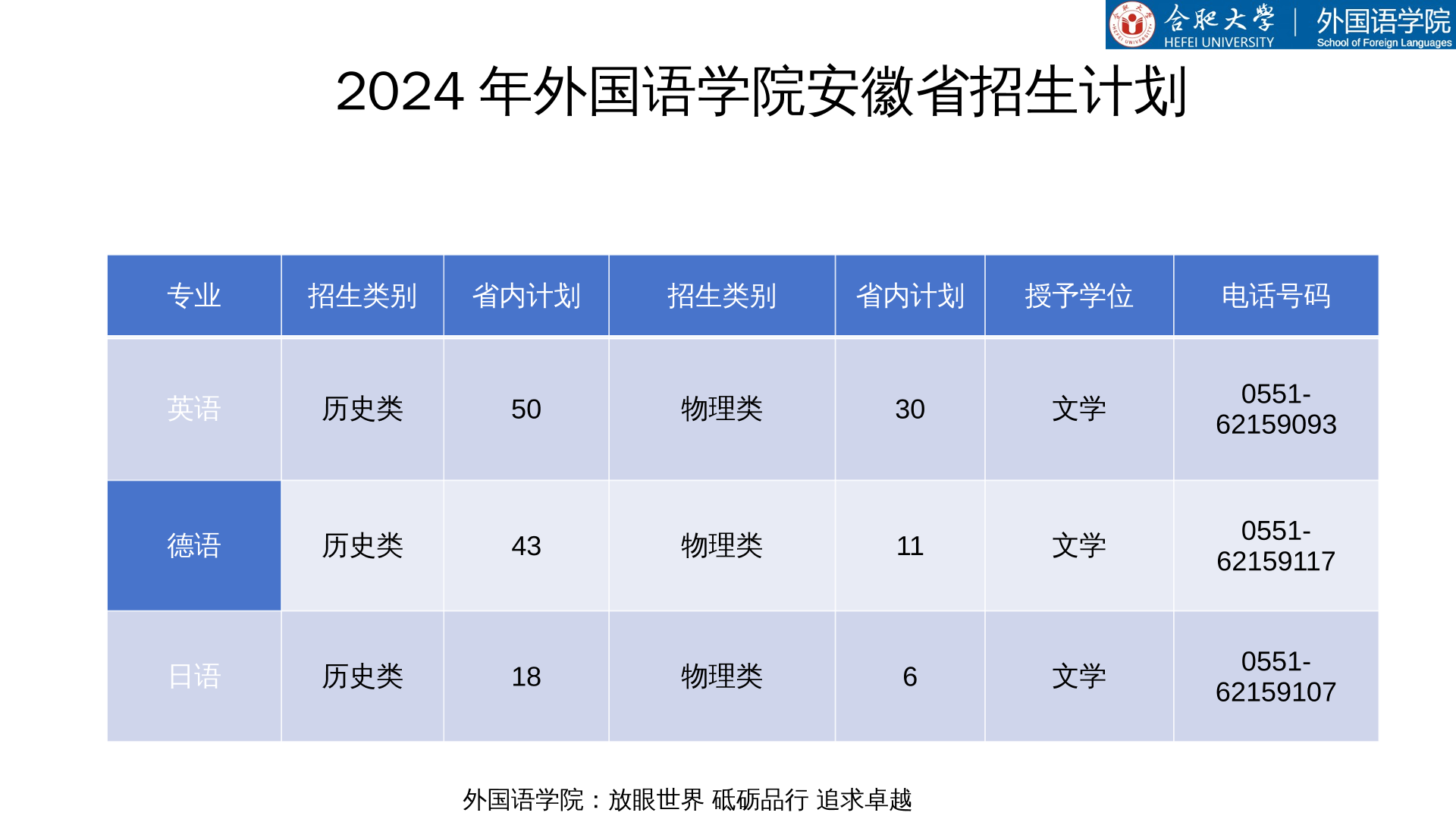 2024年外國語學院安徽省招生計劃