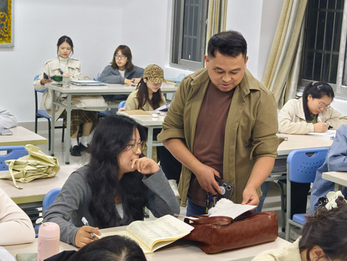 為了持續提高我院學生學習主動性和積極性,我院始終堅持推進晨讀晚自習制度。10月10日晚18:30與10月11日早晨,外國語學院學工辦主任李發俊老師與輔導員王雨濛走入早晚自習教室進行檢查指導。