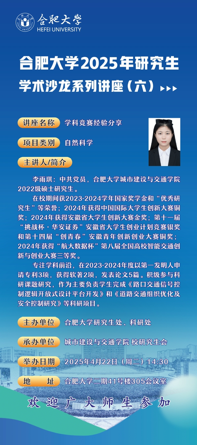 合肥大學(xué)2025年研究生學(xué)術(shù)沙龍系列講座(六)