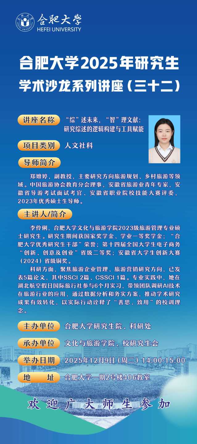 合肥大學2025年研究生學術沙龍系列講座(三十二)