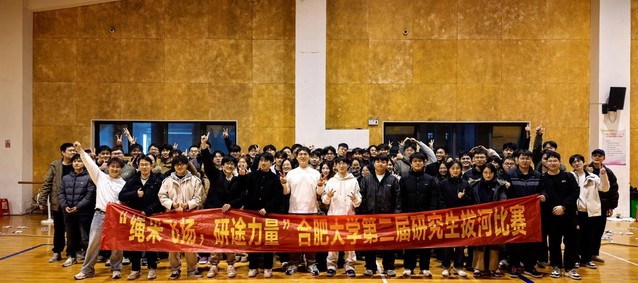 2025年12月23日下午,合肥大學體育館中吶喊聲、助威聲交織回蕩,由研究生院傾力打造的第二屆研究生拔河比賽在同學們的期盼中順利舉行。作為校園文化建設的重要組成部分,本屆比賽規模再度升級,共有17支隊伍340名研究生選手齊聚賽場,以繩為媒,在寒冷的冬日上演了一場力與美的較量,為校園注入了滿滿的青春活力。