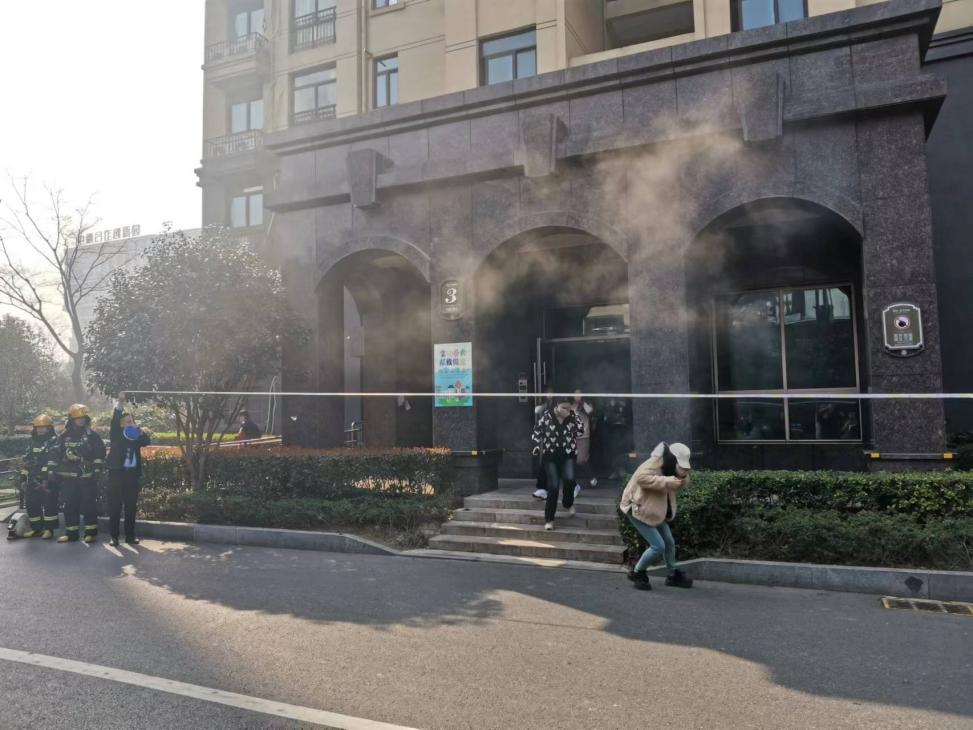 活動伊始,伴隨著響亮的警笛聲,濃煙滾滾升起,居民們在我校志愿者的引導下,迅速按照疏散路線撤離,井然有序地逃出失火地點,在保護自身安全的同時,為滅火和搜救贏得了寶貴時間,居民們所表現出的良好應急應變能力得到了消防隊員的認可。