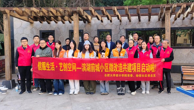 10月22日,合肥大學設計學院黨委書記劉沛平帶領教工第二黨支部、學生第二黨支部,聯合包河區始信社區黨總支、濱湖前城小區居委會,在濱湖前城小區啟動“黨建引領微改造”共商共建活動,共同搭建校社聯動、服務民生的合作平臺,以設計力量為老舊小區注入新活力。