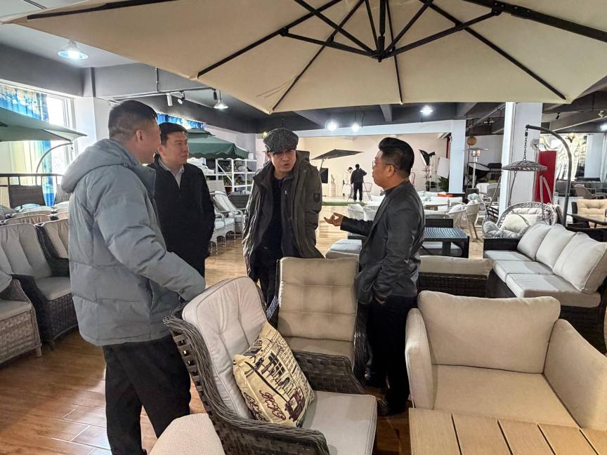 在摩達智能公司負責人及相關技術部門主管的陪同下,學院師生一行參觀了企業產品展示中心。展廳內陳列了多種采用不同工藝與材質打造的沙發系列,以及運用新型環保材料研發的創新家居產品,全面展現了摩達智能在設計美學、功能集成、交互體驗與可持續制造方面的綜合實力。潘峰在參觀過程中詳細詢問了多款家具的設計理念、用戶研究基礎、材料選用及生產工藝,并對企業將多元材質與先進工藝融入日常生活、提升人居品質的創新實踐表示贊賞。