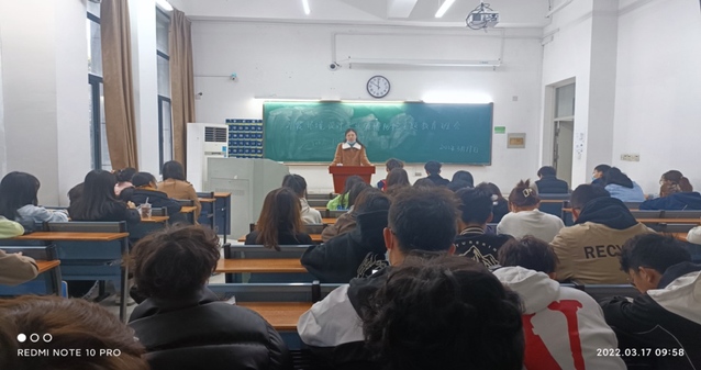 2022年3月17日上午9:35,21級環境設計專業疫情防控主題教育班會在37棟108教室召開,會議由輔導員吳嫻老師主持,主題是由吳嫻老師帶領我院環境設計專業學習疫情防控相關知識。