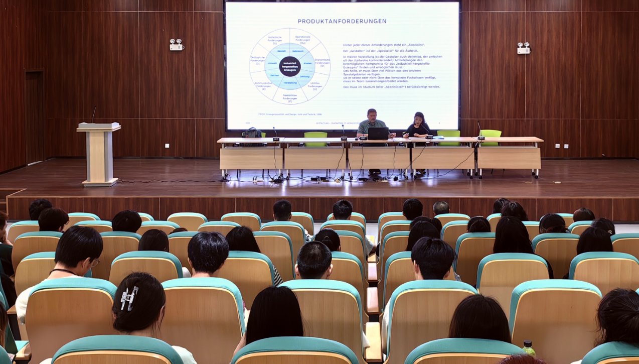 法爾克·霍恩教授的講座主題為“設計·未來·挑戰(GESTALTUNG ZUKüNFTIGE HERAUSFORDERUNGEN)”,從跨團隊、跨學科團隊協作,新的設計方法應用,人工智能和新的制造工藝四個方面出發講授了先進的工業設計理念及精髓,為同學們打開了設計的思路?;舳鹘淌谡J為工業制造的產品或生活環境中的各種產品,是我們設計工作的核心,并強調我們是為人類使用而進行設計,“設計師” 是美學的“專家”,現階段我們可以利用虛擬現實(VR)技術來快速有效地完成設計,賦予設計更多的“形式表現”和“更多的模型”。新技術和制造工藝正在改變我們的生產模式,將來同學們不得不面對一個瞬息萬變的職業世界,這也是一個具有意義深遠的社會問題,希望同學們在設計中考慮這些問題。