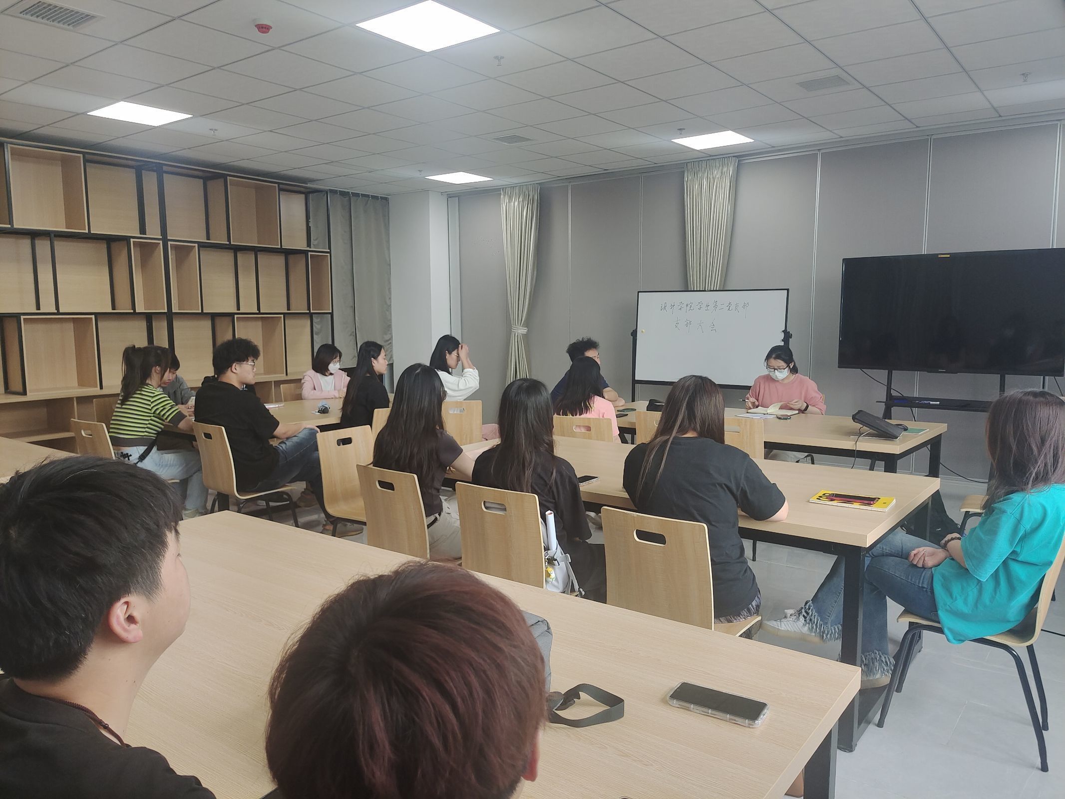 為扎實(shí)做好學(xué)習(xí)貫徹習(xí)近平新時(shí)代中國特色社會主義思想主題教育,5月23日,設(shè)計(jì)學(xué)院學(xué)生第二黨支部召開學(xué)習(xí)貫徹習(xí)近平新時(shí)代中國特色社會主義思想主題教育學(xué)習(xí)會暨“三問”交流研討會,會議由支部書記李旻主持,支部全體黨員參加。