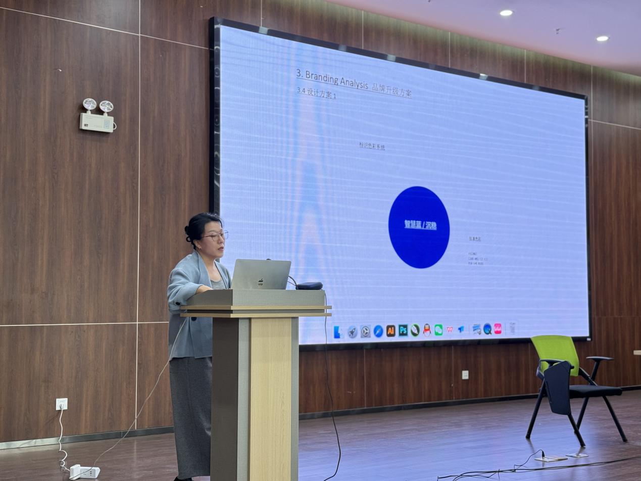 首先張雅梅老師通過安徽博望中安振興建投VI設計案例,介紹了從前期調研的充分準備到設計思路,并強調了方案匯報的技巧。利用綜合交通院品牌VI系統升級案例,分析如何在品牌現有形象基礎上進行全面規劃設計,提升企業形象的現代性和品牌力。其次,從兩個空間案例向同學們介紹了展示材質、燈光等具體解決方案。