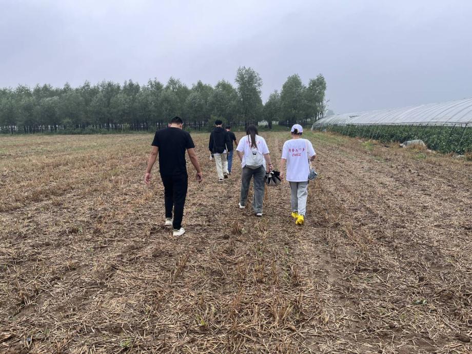 第三小組由頭鋪鎮(zhèn)團(tuán)委副書記沈瑞帶領(lǐng)我們前往頭鋪鎮(zhèn)薛林村進(jìn)行實地調(diào)研。我們了解到頭鋪鎮(zhèn)的主要農(nóng)產(chǎn)品葡萄的種植情況與市場銷售情況,此外,當(dāng)?shù)剡€種植有線椒、青椒、白桃等農(nóng)產(chǎn)品,同時有養(yǎng)牛等養(yǎng)殖業(yè)。我們在鎮(zhèn)干部的帶領(lǐng)下走進(jìn)葡萄大棚,近距離觀察頭鋪葡萄的種植環(huán)境和生長狀況。最后,我們參觀了其他農(nóng)產(chǎn)品的種植區(qū)域。凌書記和吳老師與當(dāng)?shù)馗刹窟M(jìn)行交流,詳細(xì)了解頭鋪鎮(zhèn)農(nóng)產(chǎn)品的具體設(shè)計需求,并提出打造帶有鎮(zhèn)域整體風(fēng)格的系列設(shè)計方案,包括產(chǎn)品包裝、宣傳手冊、采摘地圖、IP形象等。
