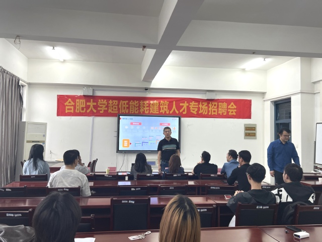 在宣講環節,中億豐、泓科等六家企業通過PPT展示,詳細介紹了企業發展歷程、技術優勢及人才需求方向。各企業代表一致表示,合肥大學在超低能耗建筑領域的學科優勢與人才儲備,為企業技術升級提供了重要支撐。