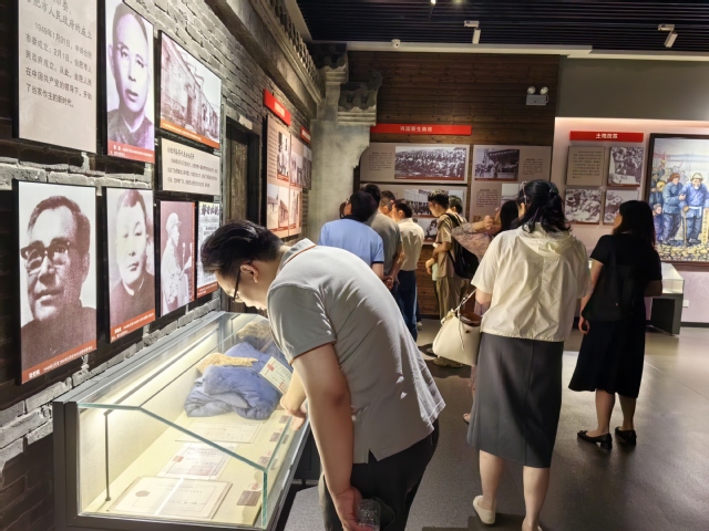 參觀展館,追尋歷史足跡。館內展陳用豐富的圖片、文物、展板展示了100多名合肥黨史上的重要人物,并運用多媒體技術呈現了合肥北鄉支部創建、雙合集農民暴動、合肥解放等黨史上的大事件。大家聆聽了革命先烈的英雄事跡,停下腳步近距離觀看資料,并與身邊的人輕聲交流,深刻感受到中國共產黨的偉大精神。