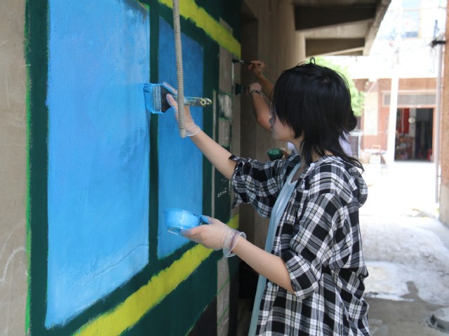 活動當日,實踐團兵分兩路,開啟雙線并行的特色實踐。實踐組以風箏為靈動畫布,與當地少年兒童攜手共繪心中的美麗鄉村圖景;墻繪組則將斑駁村墻化作文化長廊,以藝術筆觸勾勒鄉村文脈,為和美鄉村建設增添獨特的美學注腳。