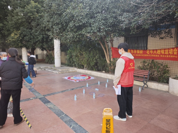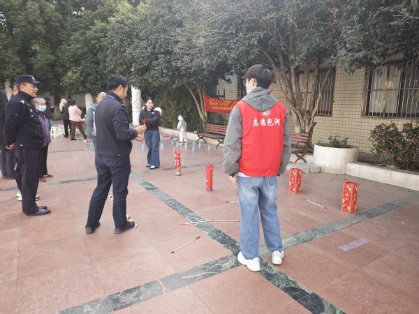 活動現場,“沙包投擲”“趣味套圈”“趣味投壺”三大項目各具特色,洗衣液、抽紙、毛毯等實用獎品整齊陳列,吸引了社區眾多老年朋友踴躍參與。大家精神矍鑠、熱情高漲,在游戲中切磋技巧、收獲快樂,現場掌聲、歡呼聲此起彼伏。智建學院志愿者們分工明確、主動靠前,耐心為老人們講解游戲規則、分發比賽道具,細致協助完成各項流程,用真誠的笑容和貼心的服務,成為活動中一道亮眼的青春風景線。