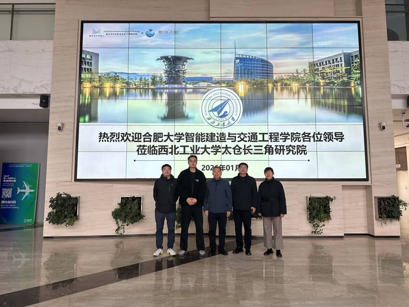 2026年1月8日,合肥大學智能建造與交通工程學院赴西北工業大學太倉長三角研究院嘉創飛航(蘇州)智能科技有限公司開展調研交流活動。學院院長祝磊、副院長肖赟等參加調研交流,嘉創飛航執行董事劉建楓等公司相關負責人參加座談。