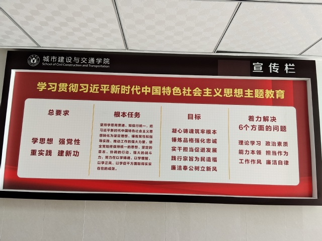 為了加強(qiáng)宣傳主題教育,城建學(xué)院黨委及時(shí)更新宣傳欄,各黨支部在本周也積極開(kāi)展了學(xué)習(xí)貫徹習(xí)近平新時(shí)代中國(guó)特色社會(huì)主義思想主題教育。(城市建設(shè)與交通學(xué)院 撰稿人:王艷麗 審稿人:張永軍)