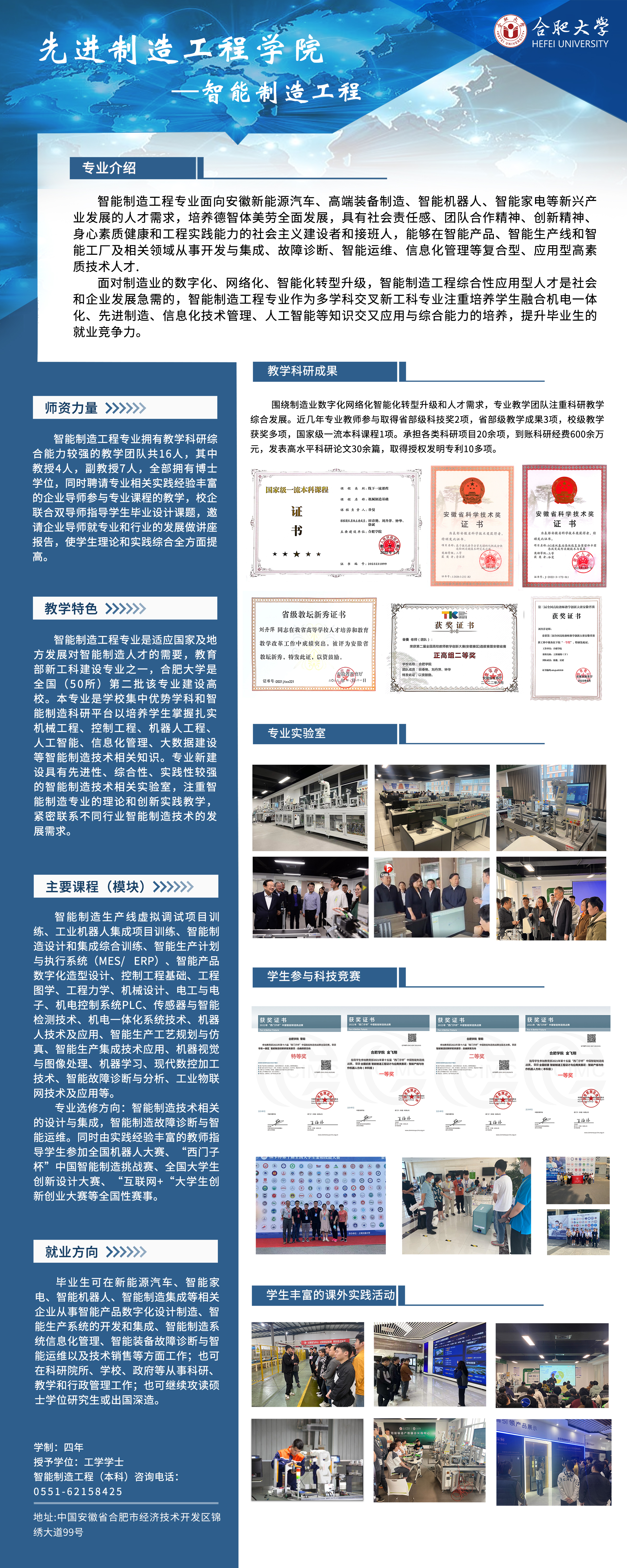 智能制造工程(本科) 咨詢電話:0551-62158425