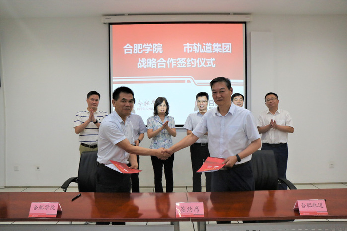為進(jìn)一步貫徹落實安徽省、合肥市關(guān)于推進(jìn)產(chǎn)教融合校企合作的有關(guān)精神,加強(qiáng)校企產(chǎn)學(xué)研合作,服務(wù)城市建設(shè)與發(fā)展,7月22日,合肥學(xué)院和合肥市軌道交通集團(tuán)在軌道交通運(yùn)營分公司簽署產(chǎn)學(xué)研戰(zhàn)略合作協(xié)議。合肥學(xué)院校長吳春梅,副校長盧平,學(xué)生處、教務(wù)處、人事處、科研處、服地辦、先進(jìn)制造工程學(xué)院、城市建設(shè)與交通學(xué)院、經(jīng)濟(jì)與管理學(xué)院、語言文化與傳媒學(xué)院等部門和單位負(fù)責(zé)人出席簽約儀式。市軌道交通集團(tuán)黨委書記、董事長陳華,黨委副書記、董事、工會主席儲繼紅,副總經(jīng)理吳四二,黨委委員、總工程師夏衛(wèi)平等集團(tuán)高管及相關(guān)部門負(fù)責(zé)人參加儀式。