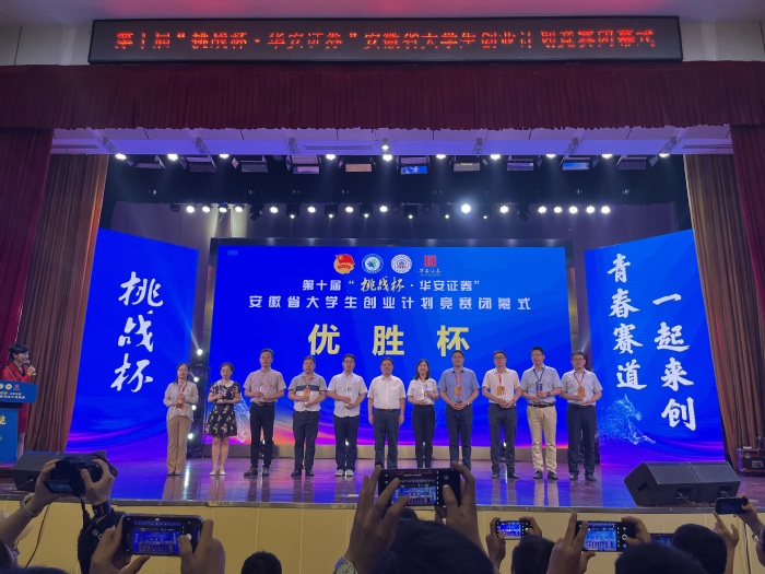 6月16日,由共青團安徽省委員會、安徽省教育廳、安徽省人力資源和社會保障廳、安徽省科學技術協會、安徽省學生聯合會主辦的第十屆“挑戰杯·華安證券”安徽省大學生創業計劃競賽在安徽工業大學落下帷幕。今年大賽參賽項目數再創新高,我校學生創業項目與來自省內123所高校的1237個項目同臺競技,經過激烈的角逐,最終斬獲金獎2項,銀獎6項,銅獎10項,我校獲得優勝杯。